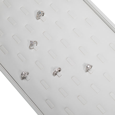 Deluxe white leatherette stackable ring tray with clips, Holds up to 66 rings.